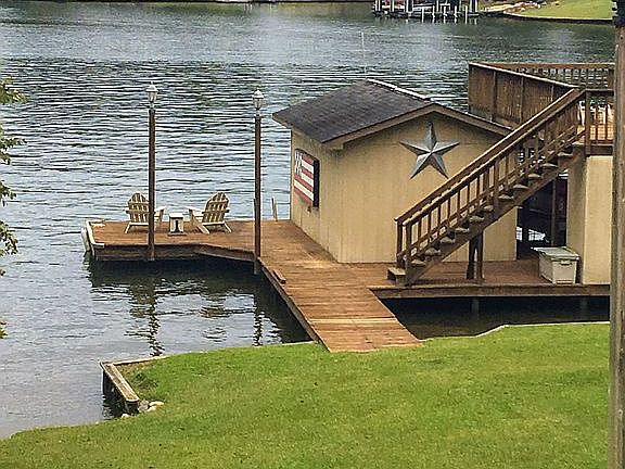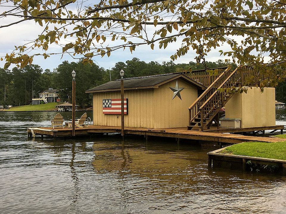 (Agents Protected) Cleared Lake Sinclair lot with beautiful views. This gently sloping Georgia Power lease lot has everything in place, just waiting for your site-built or modular home. Located on a deep, clear cove just behind Goat Island, it's a 1-minute ride to the main channel. Enjoy the safety and solitude of the large cove with amazing sunrise views. On the lot you'll find a 2-slip boathouse (1 fully enclosed, 1 covered, both with electric lifts), deep-water well, septic system, landscaping, and lake-fed irrigation system. The lot has deep, clear water (6+ feet at dock), gorgeous views, 160+ feet of water frontage, seawall, and a RARE party deck above the double boathouse! There's even an existing deck and screened porch, just waiting for your home to be attached (or can be removed). Circular driveway at the end of a quiet dead-end road gives lots of privacy. Site-built homes on both sides. There was previously a manufactured home on this lot that was removed but everything else remains! Perfect central location on lake puts you just a 10-minute boat ride from The Grill at Crooked Creek, Little River Marina, and more. Don't miss this rare building opportunity!