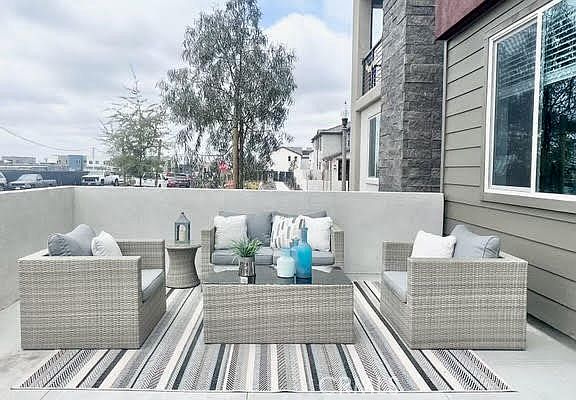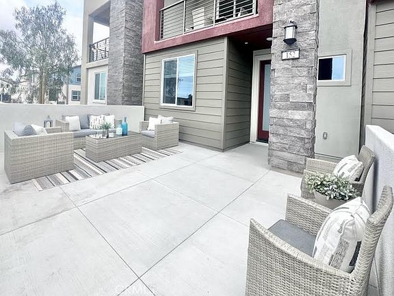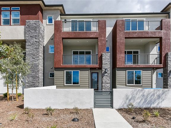 Welcome to this contemporary beautiful townhome is situated in a highly sought-after location renowned for its beautiful neighborhoods, exceptional schools, and convenient access to various amenities and entertainment options. It boasts a generous living space of 2,031 square feet, featuring three bedrooms with ensuite bathrooms, double balconies, a 2-car attached garage with direct access, and carpeted flooring in the bedrooms and tile flooring in the bathrooms. As you enter the home, you are welcomed by a big private enclosed patio, and on the first floor, you'll find a quiet and cozy bedroom with a walk-in closet and bathroom. The second level offers luxurious tile flooring throughout the bright and spacious living room, a large sliding door that leads to a balcony, a dining area, and a gourmet kitchen with modern appliances and easy-to-use cabinet drawers with sliding shelves. The master bedroom, third bedroom, and laundry area are conveniently located on the third level. This immaculate home is situated in The Great Park Solis Park, within walking distance to Portola High School, Solis Park K-8, community Pool/Club entertainment area, and kids playgrounds, making it an absolute must-see property.