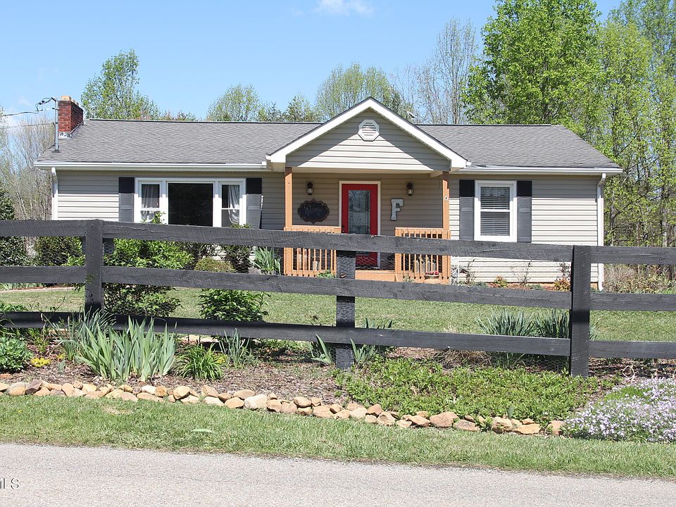 You'll feel right at home as you enter the front door into the spacious living room that has gorgeous hardwood and a beautiful fireplace that is open to the kitchen/dining room. The layout of this home allows for convenient one level living. In the master bedroom walk out the french doors onto the back deck that gives a get away oasis feel with the pool right down the steps. Downstairs is the third bedroom and another large space for extra beds, a play room, an office etc. Outside is a cozy fire pit to rest and relax, a covered patio for gatherings, a garden spot, a grape arbor, a chicken coop and a usable barn! With 4.57 acres located just 2 minutes from downtown Jonesborough and the highway! This home has it all!