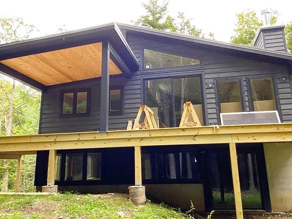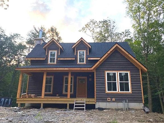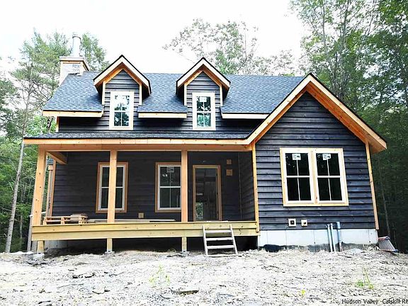 Popular 1600 sq ft twin-gables classic and right-sized new farmhouse in Saugerties NY can be designed for disparate and varied tastes. Close to Hunter/Windham, Saugerties, Woodstock, Kingston and literally 7 minutes off Thruway. 3 bedrooms on the main two floors, including a first floor bedroom with direct bathroom access. Main floor shared with kitchen, dining and living room, with large wood burning fireplace. Ground floor/basement adds another 800 sq ft of living including an office/bedroom/Peleton room, bathroom and large open media space with loads of windows. All in this 2400 sq ft home on 2 acres by design/build company Catskill Farms checks a lot of boxes. READY IN SPRING 2021.