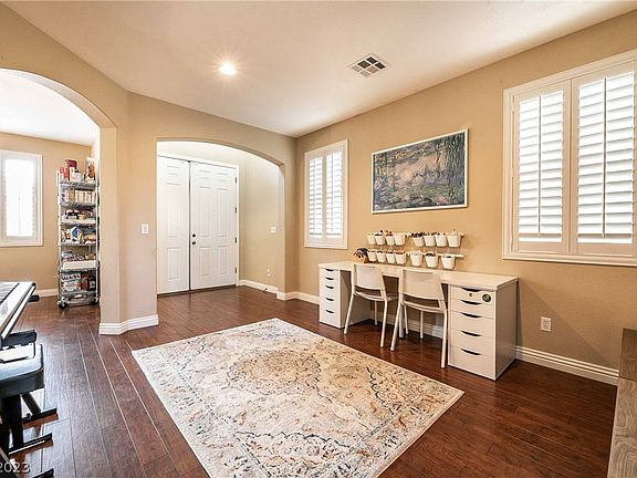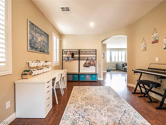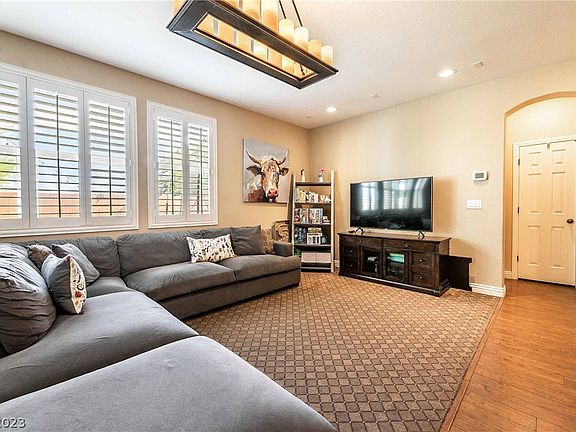 Super home with flexible floorplan. Wow - 5 Spacious BRs + Den + Loft. Plenty of downstairs and upstairs spaces for everyone to do their own activities The kitchen is a cook's delight-- lots of prep space with counters, an island and a breakfast bar (all granite) plus stainless steel appliances and a pantry. Every BR has direct access to a bath. BRs 2 and 3 share a "Jack 'n Jill". And every BR has a roomy closet and ceiling fan. The primary BR has a balcony with views of the mountains and protected wetlands, even a view of the Strip. Plenty of room to store your "stuff". Nearby parks offer lots to do: tennis, baseball, jogging trails, splash pad, dog park and MORE. This home can accommodate various living situations: large family, roommates, a multi-generation situation, etc.