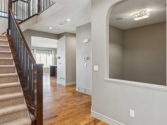 Former show home in desirable Evanston with upgrades throughout, offering 2,472 sq. ft. RMS living space plus a walkout basement. The main floor features 9 ft ceilings, a spacious foyer, open living and dining areas, and a chef-inspired kitchen with walk-through pantry. A mudroom with laundry connects directly to the garage for convenience. The upper level includes a vaulted bonus room, perfect for family time, and a luxurious primary suite with French doors. The ensuite offers a soaker tub, stand-up shower, dual sinks, skylight, and a large walk-in closet. Two additional bedrooms with generous closets and wide hallways provide ample room for a growing family. The walkout basement is partially finished with framing, electrical, HVAC, internet, and plumbing all completed, fully inspected, and approved by the City. This also includes high-end bathroom fixtures—an uninstalled water closet, vanity, and glass shower cubicle—which are part of the sale, adding exceptional value and future potential. A private backyard offers space for kids to play and enjoy. Close to schools, parks, shopping, and all amenities, this home blends elegance, comfort, and functionality in a prime location.