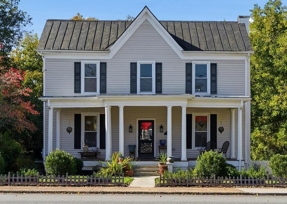 This charming 4-5 bedroom, 2 bath home combines classic character with modern updates. The kitchen has been beautifully renovated with new cabinet fronts, new wood flooring, stainless steel appliances, and maple countertops. Hardwood floors flow throughout the home, which also features a main-level laundry, walk in pantry/storage/office space, living room, bedroom and formal dining room. The upper level has 3 large bedrooms one w/an adjoining room that could serve as a nursery/gym/dressing room or office. Enjoy outdoor living on the new Trex deck overlooking a fully fenced backyard. The encapsulated basement includes a sump pump, dehumidifier and air purification system, and the metal roof was freshly painted in 2023, ensuring peace of mind. Move in ready with timeless charm!