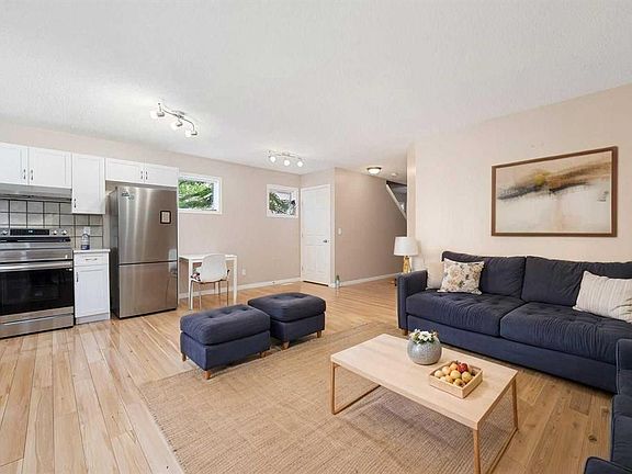 Welcome to this beautifully updated 4-bedroom, 2.5-bath corner-unit townhouse in the family-friendly community of Royal Oak. Offering a smart layout across all three levels, this home provides comfort, convenience, and style in a low-maintenance setting—perfect for families, first-time buyers, or anyone seeking a move-in ready home close to life’s essentials. Step inside to find a bright, open-concept main floor with laminate flooring throughout and a freshly renovated kitchen featuring upgraded cabinetry and stainless steel appliances. The kitchen seamlessly connects to the spacious living and dining areas, creating an inviting space for daily living and entertaining. A convenient 2-piece powder room completes the main floor. Upstairs, you’ll find three generously sized bedrooms, including a sunny primary suite with a large walk-in closet and direct access to a well-appointed 5-piece bath. This bathroom is cleverly designed with dual access—ensuring privacy for the primary suite while remaining easily accessible to the other two bedrooms via the main hallway. The fully finished basement extends your living space with a fourth bedroom, complete with a private 4-piece ensuite—ideal for guests, teens, or a home office—plus plenty of storage for seasonal items or hobbies. Enjoy outdoor time on your private patio that backs onto a quiet, shared green space—without the hassle of yardwork, as landscaping is professionally maintained. The shared driveway leads to your single attached garage, and visitor parking is conveniently nearby. Located close to everything you need—schools, playgrounds, Royal Oak Shopping Centre, the YMCA, LRT station, bus lines, and major routes—this home offers a balanced lifestyle with unbeatable convenience. Don’t miss your opportunity to own a spacious, well-kept home in one of NW Calgary’s most desirable neighbourhoods!