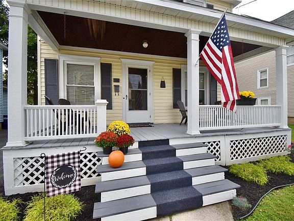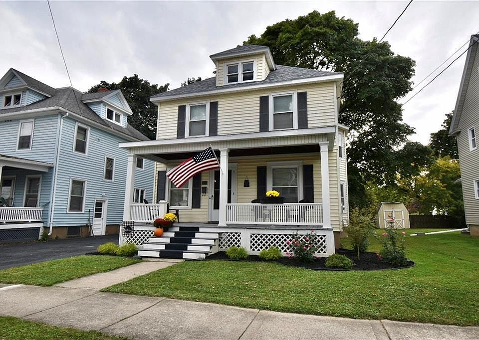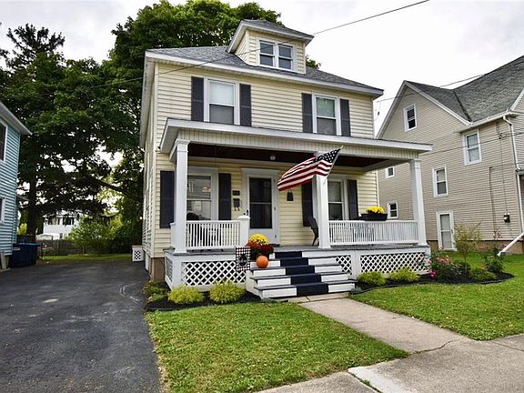Beautifully renovated home in Geneva's Founders Square Neighborhood! Many recent updates include new roof, electrical service, refinished hardwood floors, fully updated kitchen with island and two full baths. Entering through the front foyer you're greeted by beautiful natural woodwork and hardwood floors that run throughout the home, as well as two sets of original pocket doors. The first floor also features a large front living room, formal dining, a fully renovated kitchen with stainless steel appliances and center island with seating, as well as a full bath with stand-up shower. Upstairs are four good size bedrooms, all with closets, a renovated full bath with tub/shower, and a rear bonus space with a second staircase down to the kitchen that offers many different uses. The open front porch is a great place to sit and relax. Minutes to Wegmans and HWS Colleges, while also still walkable to downtown!