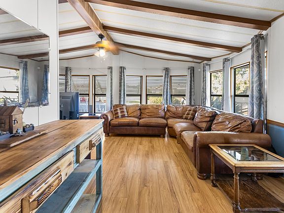 Set on a desirable corner lot in an all-ages sought after park! the park fee of $853 reflect the added value offering safer and well-kept neighborhood! this 2 large bedrooms, 2-bath double-wide welcomes you with a covered front porch that invites morning coffee or relaxing evenings. Step inside and you'll find laminate flooring flowing through a sun-filled living room. A dining area opens into the heart of the homea bright kitchen with plenty of cabinetry and counter space. Outside, is a detached garage sits apart from the home giving you independent space for your vehicles, storage and a small workshop. As part of well-maintained family park, residents have access to clubhouse, sparkling pool, community library, playground, dog park, on-site laundry, and the golf course is in walking distance! Don't miss this move-in-ready home with a detached garage. Schedule a private showing today and experience all that this family-friendly community provides!