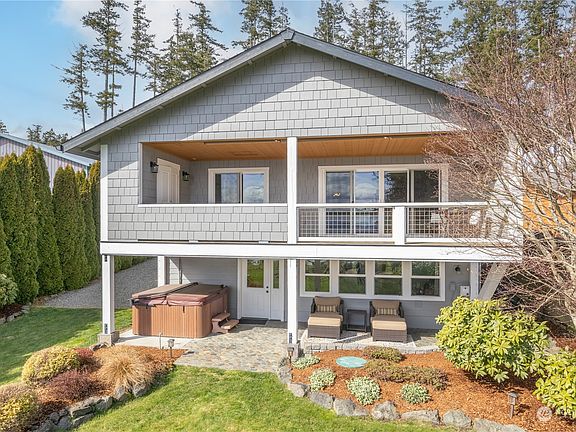 Enjoy spectacular southern views of Hood Canal and Cascade Mountains from this high-bank waterfront home. Casual elegance meets you in every room of this beautiful home teeming with quality and care. High-end finishes include heated hardwood floors, granite counters, quality wood trim, quality kitchen w/newer appliances, dbl ovens, propane stove. Location is peaceful & private with a sense of community. The lovely landscaping has a fenced yard w/water views, a gazebo & 2 covered patios overlooking the canal. Two generous ensuites, one on each level, have water views & walk-in closets. TV buffs & sports fans will love the media room! RV/boat parking too! 50-yr roof in 2019. Just 12 minutes to Hood Canal bridge. No HOA. Short-term rentals OK.