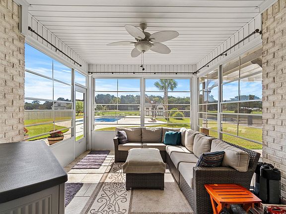 Fully irrigated lawnCorner lotSliding glass doorElegant tile flooringSplit floor planCarolina roomPrivate backyard oasis