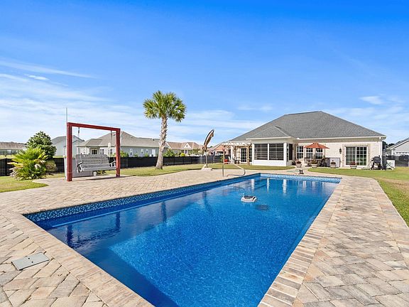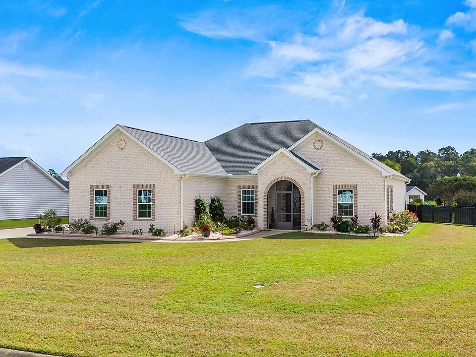 Welcome to this stunning all-brick home, ideally located on a spacious corner lot in a peaceful community of just 82 homes—each situated on a half-acre or larger lot and with no HOA fees. This serene setting offers the best of both worlds, combining the tranquility of country living with the convenience of being only five minutes from Bucksport Boat Landing on the scenic Waccamaw River and just twelve minutes from the historic charm of downtown Conway. Meticulously maintained inside and out, this home features three bedrooms and two full bathrooms, blending timeless style with modern comfort. Inside, you'll find granite countertops in both the kitchen and bathrooms, elegant tile flooring throughout, double box tray ceilings, and a bright Carolina Room that opens to your private backyard oasis. Step outside to enjoy the 25,000-gallon saltwater pool, which reaches a depth of eight feet and is surrounded by a patio and a covered veranda—ideal for relaxing or entertaining. The thoughtfully designed split floor plan includes a cozy breakfast nook, a more formal dining area that flows into the spacious living room, and guest bedrooms that are set apart from the primary suite for added privacy. The owner’s suite is a peaceful retreat featuring his-and-hers closets, a dual-sink vanity with generous storage, and a sliding glass door that leads directly to the veranda. Additional highlights of the home include a side-load two-car garage, an enclosed front portico, a fully irrigated lawn, and a 12x16 storage shed. The backyard is completely fenced, offering a secure and spacious area for pets, play, or entertaining. For added peace of mind, the home comes equipped with an automatic Generac generator that powers essential appliances during outages and is serviced annually. All kitchen appliances were replaced in 2023, and a full security camera system is in place for added safety. Offering the perfect balance of privacy, space, and accessibility, this home is ideal for anyone seeking a quiet lifestyle with quick access to modern amenities. Don’t miss this rare opportunity—schedule your private showing today!
