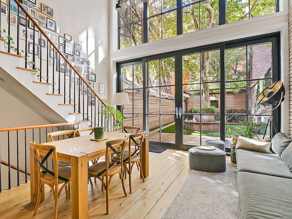 PARLOR FLOOR: The gracious parlor floor is accessed by ascending the stoop stairway and entering through the beautifully preserved double doors. A large, loft-like space and fireplace frame stunning vistas to the North and South overlooking the garden. There is also a powder room on this level and a second stairway that connects the parlor to the Garden floor below.