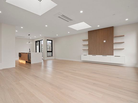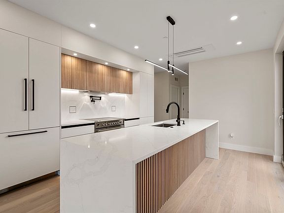 Welcome to 152 West Third, Unit 1, the Owner's Unit a stunning 2024 new-construction bi-level home that was lived in and meticulously cared for by the developer. Wow-factors await at every turn, starting with motion-sensor LED-lit stairs leading to a bright living space filled with oversized windows. The open layout easily fits a dining table and centers around a beautiful built-in media wall that flows to a private deck and a gourmet kitchen with an induction cooktop, quartz counters, vented hood, wine fridge, paneled appliances, and a sleek hidden pantry seamlessly integrated into the cabinetry. Enjoy a second outdoor space a private, fenced-in patio perfect for relaxing or entertaining. Three spa-like bathrooms offer high-end finishes throughout. With garage parking, efficient heating/cooling, and a highly walkable location, this home is a must-see.