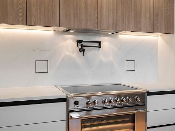 Private deckMotion-sensor led-lit stairsGourmet kitchenInduction cooktopWine fridgePaneled appliancesQuartz counters