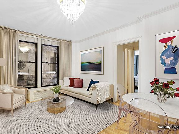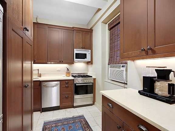 Located just around the corner from Central Park, this charming pre-war 1 BR/1 BA apartment is set in a pristine and quaint elevator building that boasts beautiful pre-war details. The spacious unit features high beamed ceilings and original hardwood floors. The renovated kitchen includes windows and is outfitted with top-of-the-line appliances, built-in cabinets and drawers, and a quartz countertop. There is a windowed bathroom and an oversized bedroom with two closets.