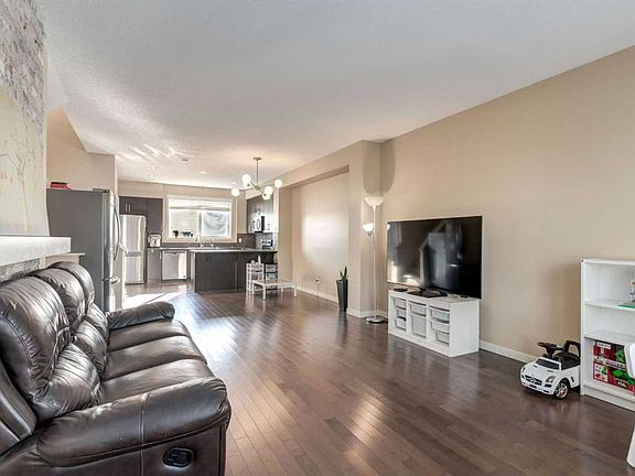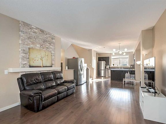 Welcome Home to New Brighton! This charming open-concept home is tucked away on a quiet street, offering privacy while still being highly accessible. With a double detached garage and a long list of recent upgrades, this property is move-in ready and perfect for families. The home features a brand new water tank and central A/C installed in 2024, along with fresh paint, new carpet on the stairs and upper floor, new blinds, and EV charging readiness completed in 2025. A larger deck was also added in 2025, providing seamless access from the garage to the back entrance. The main floor welcomes you with hardwood flooring that flows through the living, dining, and kitchen areas. The living room is highlighted by a stunning stone feature wall with an electric fireplace and large windows that fill the space with natural light. The dining area is spacious and open to the kitchen, which features a cabinet peninsula with a breakfast bar and a convenient side mudroom. Upstairs, the primary bedroom offers a generous walk-in closet and ensuite bath, while two additional bedrooms and a second full bathroom complete the level. The fully developed basement adds even more living space with a versatile family room and an additional four-piece bathroom, making it ideal for guests or a home office. The south east-facing backyard is perfect for outdoor living, with a large deck and plenty of space for relaxing or entertaining. With its excellent location close to schools, New Brighton Athletic Park, and the shops and restaurants of 130th Avenue, this home has everything you’ve been looking for in an established and family-friendly community. Please click the Virtual Tours for more detail!