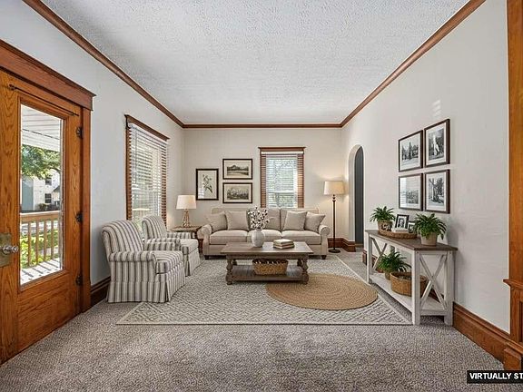 Rear deckCharming covered front porchNewer carpetGorgeous woodworkNewer vinyl windowsFormal diningRefreshed kitchen