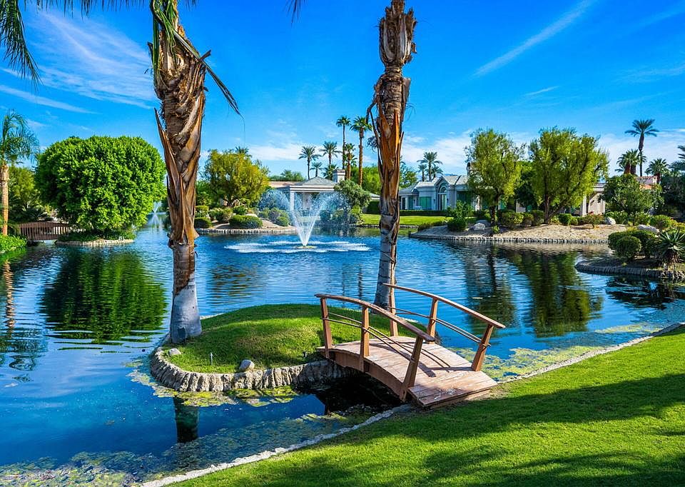 A rare opportunity to own one of only five homes in Waterford with unobstructed views across the lake. This immaculate 4 bedroom, 4.5 bathroom architectural gem was designed by the celebrated Narendra Patel. Waterford is a beautiful Custom Home Development perfectly positioned in the heart of Rancho Mirage. Close to several top flight Country Clubs.This home exudes warmth and elegance and has been lovingly cared for since its construction by the present owner.The open plan great room with dramatic fireplace has that special sought after view overlooking the beautiful Waterford lake. Short walking distance to the private tennis courts within the development.