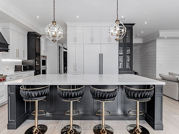 Custom Home on the Park. An exceptionally crafted, custom-built residence backing on to Rotary Park/conservation! Located on a pretty, tree-lined street in one of Aurora's premier neighborhoods, this 4+1 bedroom/6 bathroom home offers 5,185 sq ft of finished living space designed with distinction and defined by soaring 10 ft ceilings, grand open spaces, and thoughtful craftsmanship. At its heart lies a dream-worthy kitchen with a grand center island, quartz countertops, custom cabinetry, high-end appliances (Sub-Zero, Wolf, Bosch), and a walk-in pantry. The kitchen opens seamlessly to a remarkable, open concept family room where floor-to-ceiling windows span the back wall, framing backyard/conservation views and flooding the space with natural light! A modern gas fireplace adds warmth and sophistication. The formal dining room offers an elevated entertaining experience and a refined main floor office with custom built-ins brings everyday function into focus. There's also a mudroom with a custom built dog/pet shower! Upstairs, four spacious bedrooms each features walk-in closets and private ensuite baths. The primary suite is a retreat into itself, with his & her walk-in closets and a luxurious 5-piece ensuite boasting heated floors, a freestanding soaker tub, and a glass-enclosed shower. The walkout lower level extends the home's versatility with heated floors, 10ft ceilings, large windows, a 3-piece bath, and expansive open-concept areas-perfect for a gym, games room, and/or media lounge. A spacious 2-bay garage provides secure, stylish storage for your vehicles, while the large backyard and peaceful, tree-lined setting invite you to unwind in nature. Set on a quiet, tree-lined street in a family-friendly neighborhood surrounded by parks, trails, and timeless charm-this is elevated living at its finest.