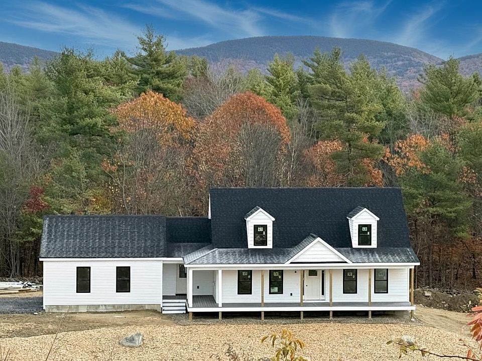 Brand new 3-bedroom, 3-bath Cape featuring a beautiful covered front porch and an ideal location—just five minutes to downtown Laconia or the village of Gilford, with easy access for commuters. The thoughtful layout includes an inviting open-concept living, dining, and kitchen area, perfect for modern living and entertaining. A convenient laundry/mudroom is located on the first floor, along with the spacious primary suite, complete with a walk-in closet, walk-in shower, and soaking tub for ultimate relaxation. Upstairs, you’ll find two generous bedrooms and a full bath, offering plenty of space for family or guests. The unfinished basement provides natural light, walkout and excellent potential for future living space or storage. Enjoy the convenience of a large attached two-car garage that leads into the mudroom/laundry. There’s still time to add your own finishing touches to make this beautiful new home truly yours!
