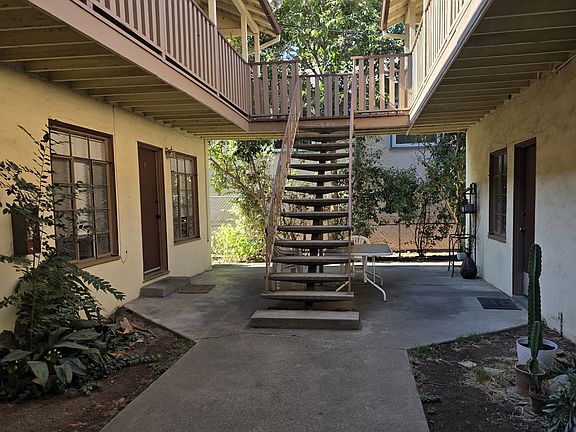 This charming 1-bedroom, 1-bath upstairs apartment is move-in ready and perfectly situated for convenient city living. Enjoy fresh interior paint, shiny hardwood floors in the living room, and a bedroom with a large closet. The original tile kitchen comes equipped with a gas stove and refrigerator, and the tiled bathroom adds classic character. Additional features include a built-in linen closet in the hall, wall heater, wall air-conditioner, and ceiling fan, ensuring comfort year-round.