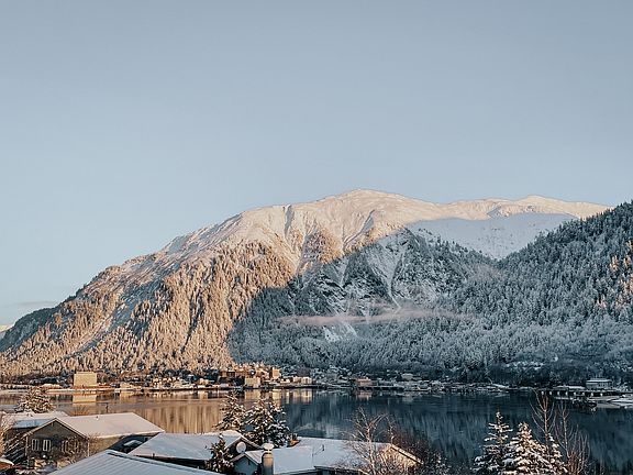 Sunny top-floor condo unit in the heart of Douglas. This spacious, beautifully decorated two-bedroom, one-bathroom condo boasts breathtaking views of the Gastineau Channel and Mt. Roberts from both the living room and the patio off the kitchen. The master bedroom is exceptionally large and features two spacious closets. The second room can function as either a bedroom or an office. The kitchen comes fully equipped with all the essentials you need. Enjoy a serene stay away from the hustle and bustle of downtown Juneau's tourism, while still being just a short commute to downtown and the valley. The condo is just steps away from the bus stop, downtown Douglas, Sandy Beach, and numerous trailheads.