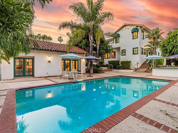 Upon entering, you are greeted by the grandeur of a Batchelder fireplace in the expansive living room, a true centerpiece that radiates warmth and character. The separate dining room and spacious kitchen, complete with a welcoming breakfast area, seamlessly connect to a wrap-around covered porch. This outdoor oasis overlooks a sparkling pool, inviting you to embrace the California lifestyle, while a separate whirlpool spa promises relaxation beneath the azure skies.