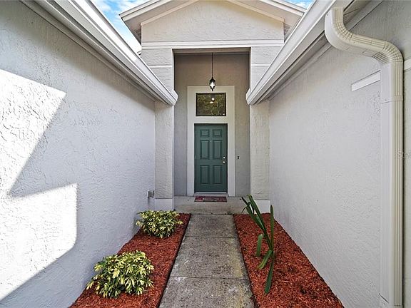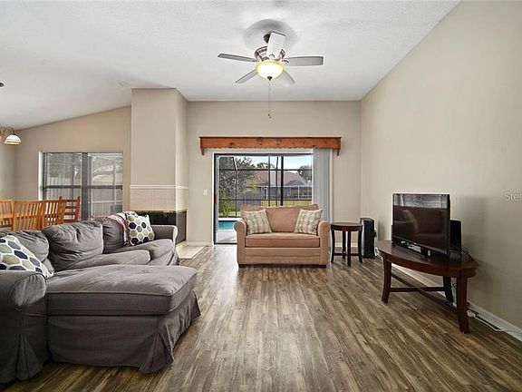 Lovely 3 bed (plus an office), 2 bath, pool home with a POND VIEW conveniently located in the established neighborhood of Providence Lakes. This charming home has some great features and updates, including new ROOF in 2014 and water-proof luxury vinyl plank flooring throughout. Interior paint is from 2016, exterior was painted and sealed in 2018 and vinyl siding installed. HVAC from 2018 with a Bosch, 18 SEER heat-pump unit! Whole home surge protector installed in 2019! Kitchen is a culinary delight with lots of counter space, breakfast bar, and separate pantry. The stainless steel refrigerator with french doors was installed 2016 and the rest of the matching kitchen appliances are brand new, installed in 2019! The bright kitchen overlooks the combination dining and living room area with a fireplace and huge sliding door that leads right out to the sparkling blue pool and screened lanai. Perfect for outdoor entertaining and enjoying the serene pond view. The master bedroom features vaulted ceilings, and a private sliding door to the pool area. The master bathroom has also been recently updated with floor to ceiling tile along with a travertine bench and tile trim in 2018. This property is in walking distance to Mintz Elementary School and just minutes away from many dining, shopping, and entertainment options. Don't let this one pass you by! Come and see it today!