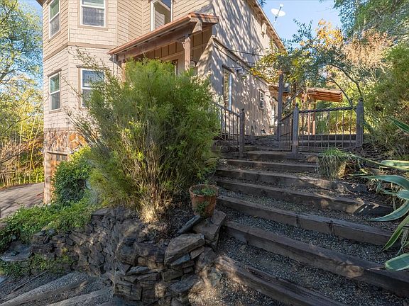 Custom Home on .42 Aces near Downtown Murphys in Murphys Ranch subdivision, just minutes from downtown! This home features 3 bedrooms, and 2.5 baths, 2400 square feet of living space, perfect for families and entertainers alike. The key Features are: Elegant entry with a beautiful Iron front door , a stunning curved staircase leading upstairs to the 2 Guest bedrooms and bath, plus family room. Off of the front formal entry you will see the Spacious open-concept living and dining area with 9 ft ceilings and hardwood flooring with lots of natural light. The Great room boost a brick gas log fireplace perfect for those chilly evenings. The Gourmet Kitchen showcases granite countertops, All stainless steel appliances, GE oven, GE microwave, GE Refrigerator, Kohler Farmhouse sink and a Whirlpool dishwasher, plus the large island holds the GE propane cooktop, ideal for culinary enthusiasts. The laundry room is off of the kitchen area with an Amana washer and dryer that will stay. A 1/2 bath for guests is also near this area. The primary suite is on the main level with a large walk in closet and offers a luxurious primary bath with slate flooring, marble tiled countertops, large jetted soaking tub, and oversized walk-in shower, and his and her vanities. Off of the kitchen you will find French doors that lead to a wrap-around deck that overlooks a beautifully landscaped yard featuring multiple fruit trees, a treehouse with storage beneath, a greenhouse and a fenced in garden area and a koi pond by the side landing. The double car garage is 40 feet deep and has 10 foot doors, there is plenty of room for your cars and storage. This home is perfect for those seeking a blend of elegance and comfort in a serene setting. Don't miss your chance to make it yours!