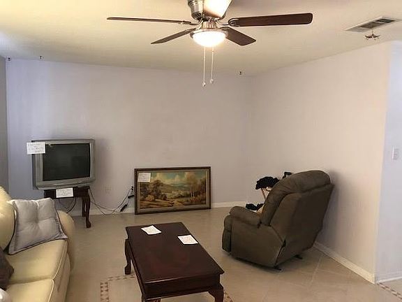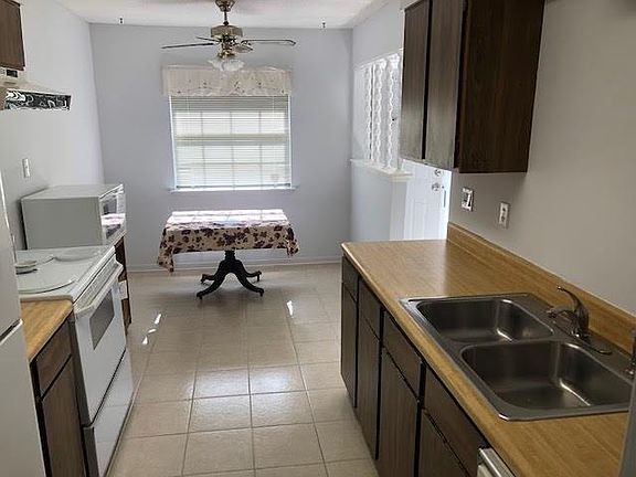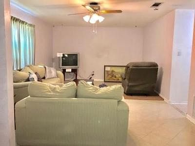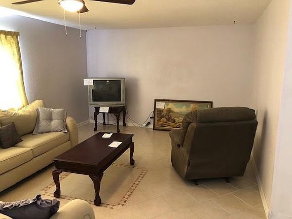 Never flooded. X flood zone. 10 years ago, all flooring replaced to ceramic tile. Huge living room. Fully equipped kitchen - all appliances & washer & dryer remain. Roof replaced 2013. Inside laundry room with pantry. 19x15 enclosed patio. 1 car garage. Fenced in yard.
