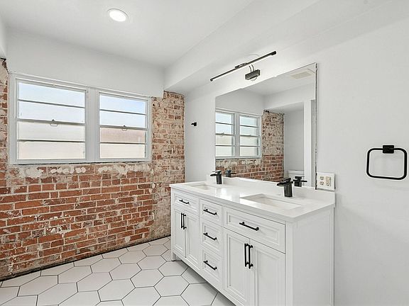 Modern fixturesBright and open spaceUpdated yardShade structureExposed brickHot tubFire pit