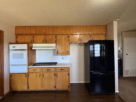 Fridge included, washer/dryer hookups, and a 1-car automatic garage.