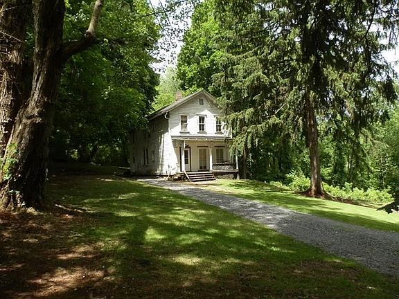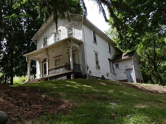 CENTURY FARMHOUSE situated high above French Creek with trails to the creek & down over the bank to the future Allegheny Valley Trails Association extension of the Bike Trail. House needs everything but a roof (new 2013). 3 BR's up offer grand views. Center room for toys(office) & Bath(tub disconnected). 1st floor Office/Bedroom w/parlor doors to large LR; Kitchen w/Banquette seating & laundry hook-ups; full Bath. Location is incredible. Big front porch overlooks long lane into woods & ravine