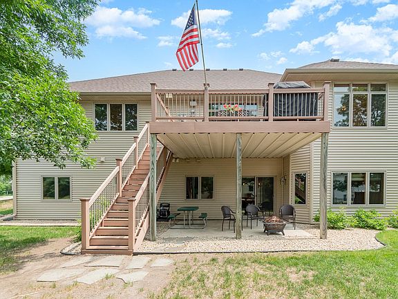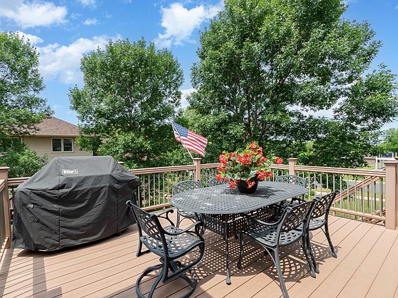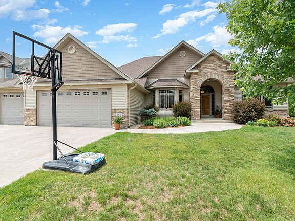 Priced far below replacement! This 4-bedroom rambler is loaded with upgrades and was a contractor’s former home. You will love the 9’ ceilings on each floor, large open spaces & natural light throughout! The main floor has hickory hardwood floors throughout the kitchen, dining & foyer, an office with French doors & custom cabinetry is located just off foyer. Great room has a floor to ceiling stone FP, vaulted ceilings & custom built-ins & transom windows. The open kitchen features granite countertops, tile backsplash & a corner pantry plus a bay dining area loaded with windows & access to maintenance free deck! The primary suite has a tray vault ceiling, complete with a luxury bath, tiled shower, jetted tub plus a large walk-in closet! Main floor ldry has a new washer & dryer & 3/4 BA at garage entry. Completely finished w/o bsmt has a family room with bench bay window & wet bar, stone FP & built-ins, in-floor heat, a 1/2 bath plus 2 addl bedrooms. Roof & siding 2 yrs.