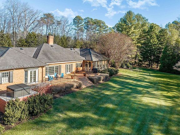 Set in total privacy and tranquility yet within a coveted Ivy neighborhood, this distinguished, all brick, one level home offers wonderful living spaces inside and out. 9 to 10 ft ceilings. Fireplaces in living, family, and great rooms. Expansive eat-in kitchen. Large brick patio and huge screened porch with tile floor overlook the dead-level rear lawn. The almost 6 acre parcel enjoys irrigation and a deer fence. Xfinity internet, whole house generator, plenty of storage in the basement.