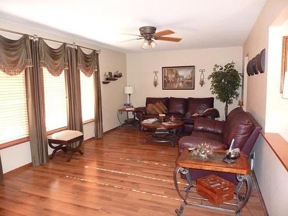 Outstanding, beautifully decorated, 3-4 bedroom ranch located on large, nicely landscaped & treed lot. Updates include hardi-plank siding/stone exterior, roof, deck, wood-look laminate throughout main areas, kitchen, master bath w/ glass & ceramic tile & whirlpool tub, freshly painted interior, ceiling fans & light fixtures, carpet, EDO w/ 3 remotes, windows & service door in garage, plus more! Large shed and all appliances included. Ready to move in and enjoy! 1 yr HMS Home Warranty included.