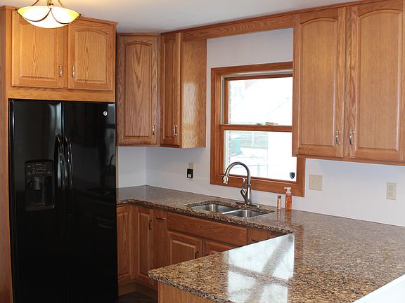 All brick 2 bedroom ranch in excellent area w/ great HW floors throughout and good size rooms. Recent remodels in kitchen and bathroom. All GE appliances, Cambria Quartz countertops. New roof (house and garage) and new windows. Concrete patio with sliding glass door. Security system. Close to downtown, grocery stores, churches, and the west side. Public and private schools within walking distance. Full bsmt, 1.5 car detached gar. & fenced back yard. Sq. ft. believed accurate but not warranted.