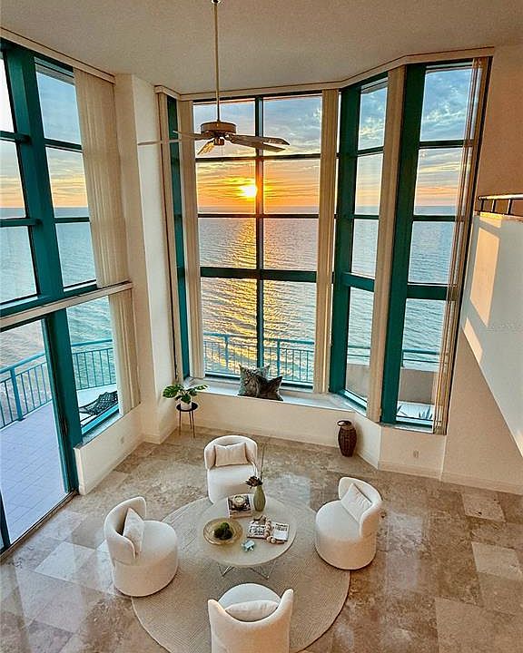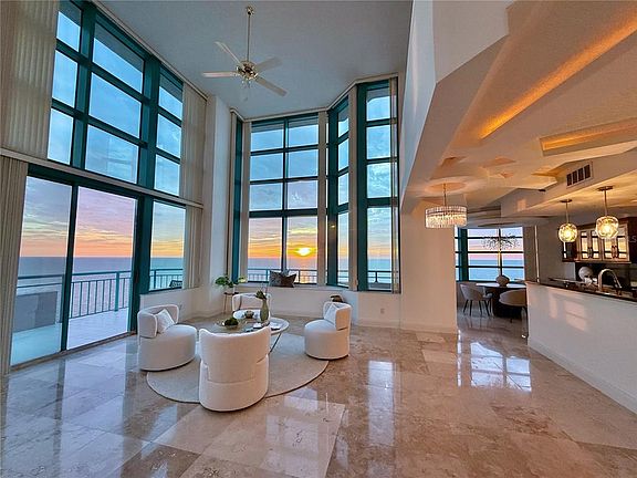 Rare TWO-STORY BEACHFRONT PENTHOUSE – Panoramic Sunset Views, Stunning Updates & Hurricane-Resilient Design...This exceptionally rare, two-story beachfront penthouse at ULTIMAR One has been brilliantly refreshed and elevated, offering an unmatched combination of modern elegance, Gulf-front panoramas, and peace of mind with solid concrete construction. Occupying both the 19th and 20th floors, this premier penthouse residence offers an expansive layout on the top of this southwest-facing masterpiece. From the moment you enter, breathtaking Gulf views unfold, with every room opening to impressive balconies that create an ever present connection to the water. These expansive wraparound terraces create the sensation of floating above the shoreline — perfect for entertaining, relaxing, and soaking in the serenity of the sea with the sound of the waves. Living at Ultimar is more than a mark of prestige — it’s the realization of your dream coastal lifestyle. Here, every day feels like a vacation, and every moment a reminder that you’ve arrived at the pinnacle of beachfront living. Inside, upscale new updates including floors and elegant bathrooms have transformed this residence into a turnkey showcase of coastal luxury. The grand two-story living space is framed by soaring ceilings and walls of glass, with a dramatic curved staircase that serves as the architectural centerpiece. The contemporary kitchen pairs rich cabinetry with sleek dark granite, opening to a casual dining area with sweeping Gulf views. The formal dining room offers an elegant setting with beach vistas as your backdrop. The first level also features a versatile first guest bedroom (ideal as an office), a new elegant bathroom, and a gracious guest suite (or second primary) with oversized walk-in closet and expansive walk-in shower — all refreshed to reflect a sophisticated design with a spacious layout. Upstairs, an open loft / media lounge overlooks the living room and opens to a private upper balcony. The primary suite is a true sanctuary, with dual custom walk-in closets and two indulgent, spa-inspired bathrooms featuring soaking tub, walk-in showers, and resort-quality finishes. A semi-private elevator delivers you directly to your penthouse door, and a private two-car garage with additional storage located just steps from the elevator for unmatched convenience. As part of the exclusive Ultimar community, residents and guests enjoy an elevated lifestyle with three resort-style pools, whirlpool spas, tennis courts, a state-of-the-art fitness center, billiards room, plenty of parking, and private beach access — all just steps from the sugar-white sands of Sand Key. Minutes from Clearwater Beach and Belleair, and only 30 minutes from Tampa International Airport, this residence offers a rare blend of seclusion, sophistication, and security. This move-in-ready, newly updated two-story penthouse is more than a home — it is a statement of coastal luxury, a lifestyle realized, and one of the most sought-after residences on Florida’s Gulf Coast.