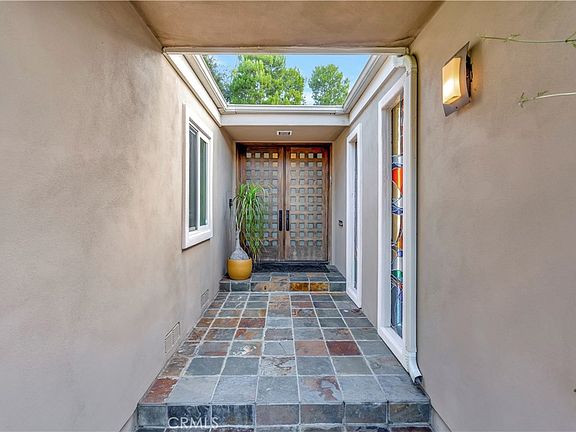 This state-of-the-art mid-century modern home presents soaring ceilings, sky lights, clean lines, and oversized windows allowing in plentiful light and air. Situated at the end of a quiet cul-de-sac with over 4000 sq. ft., the home allows for four spacious bedrooms and three bathrooms, and an office space. The open and airy entrance flows through the living room, dining room, and family room that includes its own bar. Meanwhile, exposed wood beams, an open concept, and a delightful stained-glass wall make for the entertainer’s dream kitchen. Glass sliding doors across the house open to a private and bright backyard, complete with a built-in professional BBQ and a gleaming in-ground pool. Come make this picturesque haven your own!