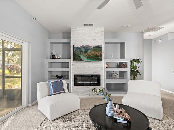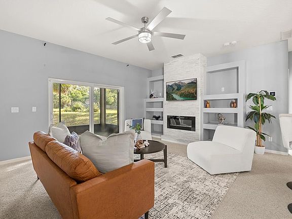 Welcome to this beautifully maintained 3-bedroom, 2-bath home offering 1,786 square feet of comfort and charm in a peaceful, established neighborhood with no rear neighbors. Designed with a desirable split floor plan, this move-in ready residence exudes warmth and sophistication from the moment you walk in. The spacious living area features a newly added fireplace and striking brick accent wall (2023), creating a cozy yet elegant focal point. The living, dining, and kitchen areas were freshly painted in 2022, complementing the home’s bright and inviting atmosphere. Every detail has been thoughtfully updated, including a brand-new roof (2024), modern ceiling fans and light fixtures throughout the interior and exterior (2023), and an updated bathroom cabinet (2024). The kitchen shines with new shutters (2023), a new garbage disposal (2025), and new blinds (2023) that pair beautifully with the home’s 2022 energy-efficient windows. Practical upgrades such as a new irrigation system with updated piping (2024), a convenient garage code box (2023), and a newer hot water heater (2022) ensure peace of mind for years to come. With its combination of timeless charm, modern updates, and a serene backyard setting, this meticulously cared-for home is ready to welcome you.