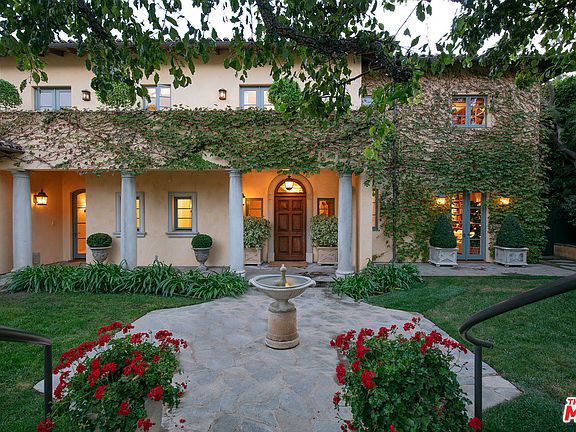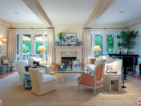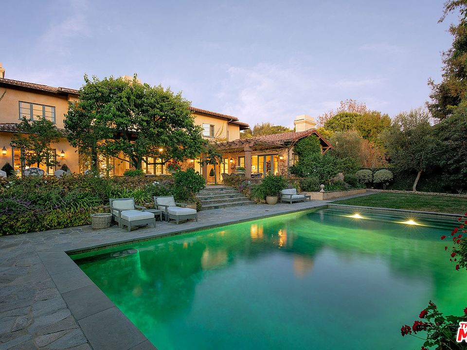 A taste of the Hotel Bel Air in the Riviera! Tucked away on a quiet st, N of Sunset, lies this magical, refined Provence Style Ctry Home lovingly built by an interior designer for her family. Situated behind gates/hedges, this warm, inviting & elegant home will captivate from the moment you enter. Wful volumes of space all dappled in natural light, open flr plan, clean lines, wd flrs, vaulted beamed clgs & French drs thruout. Lg liv rm, FDR & fab eat-in cook's kit/fam rm all open to trellis-covered patio, outdr liv rm w/ FP, lush, very pvt garden & pool. Exceptional master ste w/ sit area, pvt terrace, dual lavish bths & fitted closets and separate gym + 3 addl BR suites. Other spaces/amenities include a cozy office/den that opens to the garden, upstairs library/sitting area, fab flower arranging rm/mudrm & rm size temperature-controlled wine cellar & 5 fireplaces. A very special offering filled w/ romance & charm for the most discriminating buyer. The perfect Calif Lifestyle.