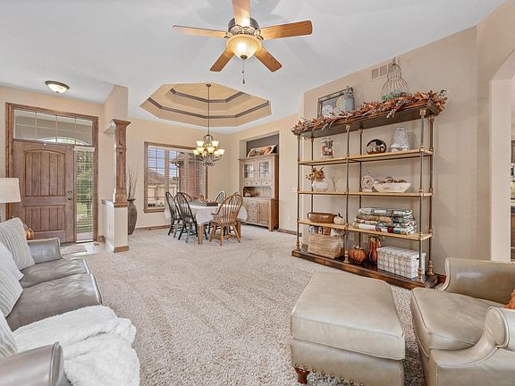 Welcome to your dream home! This stunning 5-bedroom, 3.5-bath home—crafted by the highly regarded Fahsholtz Construction—features a thoughtfully designed split-bedroom floor plan with luxurious finishes throughout. Step inside to soaring 10’ ceilings, abundant natural light, and rich knotty alder wood cabinetry and trim. The formal dining and living rooms provide elegant spaces for entertaining, while the open-concept kitchen and family room create a warm, inviting hub for everyday living. The family room boasts a coffered ceiling, built-in bookcases, and a striking stone fireplace. A chef’s dream, the expansive kitchen offers a large island with eating bar, walk-in pantry, custom vent hood, under-cabinet lighting, gas range, and beautifully refinished hardwood floors. Retreat to the spacious primary suite featuring a barreled ceiling with LED accent lighting, ample room for a king-sized bed and furnishings, and a spa-like en-suite bath. Enjoy double sinks, a soaking tub, a dual-head walk-in shower, private water closet, and a large walk-in closet. The main floor is completed by two additional bedrooms and a full bath. Downstairs, you’ll find a generous game area, cozy family room with fireplace, two more bedrooms, 1.5 bathrooms, and a large storage room. The basement is also prepped for a full wet bar—plumbed and wired, just waiting for your custom touch. Extend your living space outdoors with a spacious, covered deck featuring a dual-sided fireplace and wall-mounted TV—perfect for year-round relaxation or entertaining. Located in the sought-after Andover School District with Sedgwick County taxes and low remaining specials. Don’t miss your chance to call this exceptional property home for years to come! Proudly presented by Shane Pullman and Berkshire Hathaway PenFed Realty, call today for your private showing!