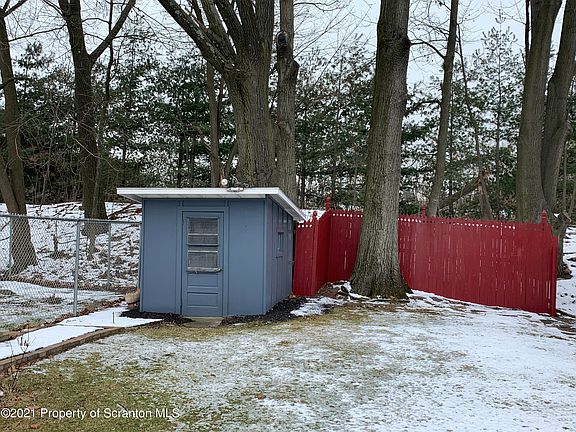 Beautiful neighborhood in the Hollywood Section of Dunmore! Home is in move-in condition! Won't last long! Included in sale, beautiful canvas awnings only 2yrs old. There is a built-in wall air conditioner and 2 window air conditions that remain. New drywall, new electrical box, house is fully insulated, water heater is only 4 yrs old, furnace serviced every year. replacement windows in bsmt., Formal Dining Room: Y, Semi-Modern Kitchen: Y, SqFt Fin - 2nd: 588.00, Additional Info: Hardwood floors in LR & DR, carpeting in bedrooms only 4yrs old with hardwood underneath, including stairs, Stainless Steel appliances! Bsmt has office w/cedar closet. Also bath in the bsmt with shower, sink and commode. Beautiful covered front porch, enclosed rear porch, patio, shed and OSP! Blacktopped driveway is newly re-surfaced.