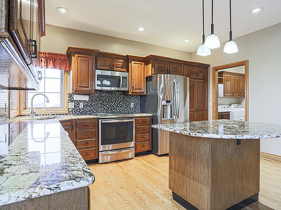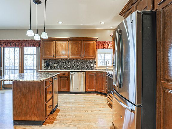 Custom built 4+ bedroom ranch is now ready for a new owner. Features large open kitchen with GE stainless steel appliances, wood floor, granite countertops, and large center island. Slider door to composite deck with aluminum railing. Main floor laundry with all the extra built-ins. Main floor primary bedroom with en-suite with jacuzzi tub, tile walk in shower and walk in closet. Full finished walk out basement with 2 additional bedrooms, storage room, full bathroom and walks out to patio area. Swing set playground in the yard will remain. Extra large 2 car garage with additional built in storage will also remain! All electric home with geothermal heat. 250 gal. buried propane tank is owned and will remain/ only operates fireplace and grill on deck. Home sold as is.