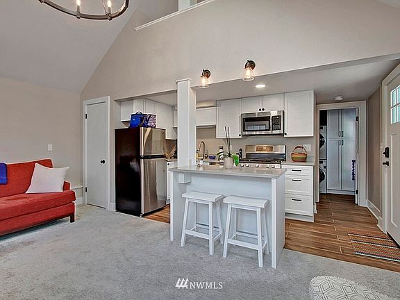 Peaceful, new cottage built in 2019. Fully furnished with full kitchen and bathroom, lofted queen-sized bed, in-unit washer/dryer, and air conditioning. The cottage is on a lot across the street from charming, tranquil Ravenna Park, a 50-acre wooded park criss-crossed with streams and bridges end-to-end. Enjoy the park's beautiful PNW scenery while being only an 8 min walk from Whole Foods, Bartells, and numerous restaurants. The heart of the UW restaurant scene is a 12 min walk to the south. University Village, with upscale shops and eateries, is a 5 min drive. Public transit is plentiful. 8 min walk to Roosevelt Lightrail Station, taking you to UW, downtown, clubs/bars in Capitol Hill, the airport. 3 min walk to bus stop taking you straight to UW/Seattle Children's. 6 min walk to bus stop taking you to Green Lake. 94 walk score. The cottage is just a few minutes' drive from UW Medical Center - Roosevelt, and Seattle Children's. Harborview, several Swedish locations, and UW Medical Center - Northwest are all within 5-7 miles. Availability and rent - Available August 1 - $2,400 per month, all utilities included but electricity. Renter will cover 20% of electricity billed. - Move-in costs: first, security deposit of $2,400; move-out cleaning fee of $275 - Renter to carry renter's insurance (approx. $15/month) - Lease term: Flexible, from 8 to 12 months Applying - Minimum credit score of 700, and clean credit history of +4 years, background check - Total gross income of 4x the monthly rent - Good rental history, with no late payments, evictions, noise complaints, or damage beyond reasonable wear and tear - Applications will be through Zillow for background and credit check - If interested, please reach out. We'll send you a virtual tour and/or set up time for you to see the space in person. If you like it, we'll send you a link to apply.