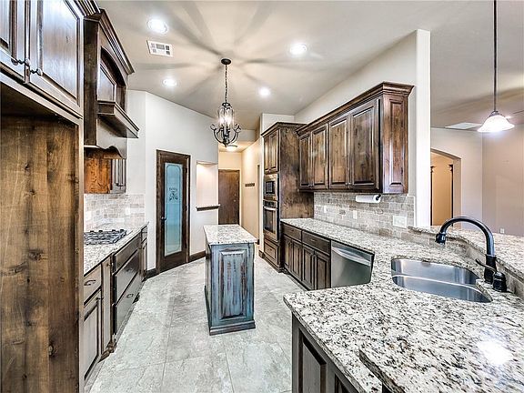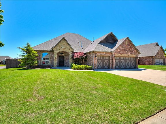 Wonderfully maintained original owner home in sought after Griffin Park. Elegance as you walk through the front door with crown molding and manufactured hardwood in the main living area. Spacious living room w/ cozy gas fireplace. 3 bed plus office w/ closet. Kitchen w/ island, breakfast bar, gas range SS appliances and pull out spice rack. Immaculate garage w/ epoxied floor and storm shelter. Master suite boasts dual vanity + makeup vanity, whirlpool tub, dual headed walk in shower and large walk in closet w/ built ins. Enjoy evenings outside on your south facing over sized back patio. This home is conveniently located near the neighborhood pool and rec facility. Great location in central Edmond.