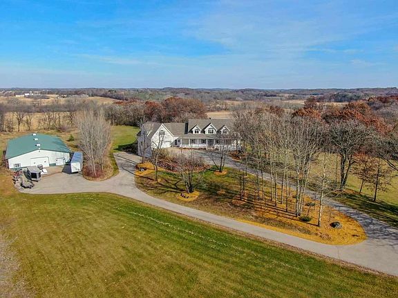 Sited on almost 14 acres this impressive estate is perfect for an active lifestyle. The 6,648 sq. ft., 5 bedroom, 5 bath home is highlighted by the great room with a tall bank of windows that stream in sunlight and give long views of trees, meadows and wildlife on the land. A recently remodeled gourmet kitchen and large dining area are designed for daily life or more formal entertaining. Dramatic staircase leads to the second floor and a 20' bridge overlooking the great room. Main level primary suite with fireplace and newly re-done bath. Enjoy the 18x44 in-ground pool, walking, hiking, projects in the 60'x120' heated shed or a basketball game in its 40'x50 court for year 'round fun. The home has a 3 level elevator and is handicap accessible. Easy commute to Madison or points east.