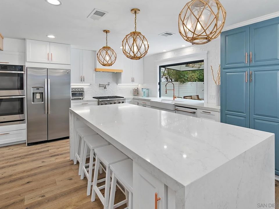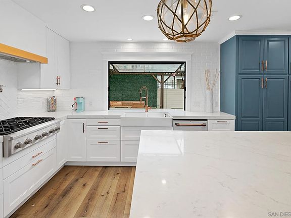 Welcome to your dream home on the uniquely charming and peaceful Pendleton Road! This stunning four bedroom property effortlessly blends indoor and outdoor living with La Cantina doors and a clever pass-through bar window, leading to a redwood trellis lined backyard. The first floor is beautifully open and inviting, perfect for entertaining with a convenient half bath for guests. The chef-designed gourmet kitchen boasts a brick backsplash, quartz waterfall island, six-burner range, double oven, wine and drink fridges. A maple beam ties in the custom brick fireplace and staircase, creating a warm and inviting atmosphere. This home also features 3 off-street parking spaces, small attached single car garage, central air conditioning, and a whole-house carbon water filtration system for your convenience and peace of mind. Enjoy the outside shower and relax under the cafe light ceiling in the large backyard. Modern updates include beautiful wood trim around all windows, water proof LVP flooring, paint, and carpets throughout the bedrooms. The plumbing, electrical system, dual pane Milgard windows, and insulation have all been modernized for your comfort and safety. Don’t miss this incredible opportunity to own a piece of paradise in Coronado! Tenant lease ends June 14th.
