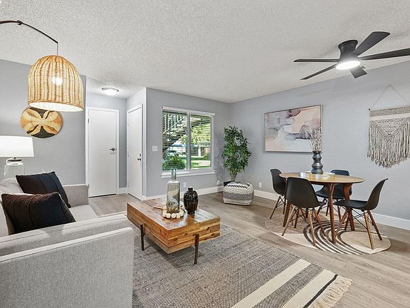 End unit single-level condo with no steps to entry! This 3 bed, 2 bath home is light and bright and features an open floorplan. Modern kitchen with new cabinetry, stainless steel appliances, quartz countertops with tile backsplash and breakfast bar. Oversized primary suite with walk-in closet. Updated baths. Newer dual pane windows, central heat and A/C. Fresh interior paint. In-unit laundry. Enjoy the spacious and peaceful private backyard with covered patio, perfect for family BBQs and entertaining. Two assigned, covered parking spaces with additional guest parking available. Close to nearby shopping, grocery stores and public transportation. Lower HOA dues compared to other nearby complexes. Just bring your things and move right in!