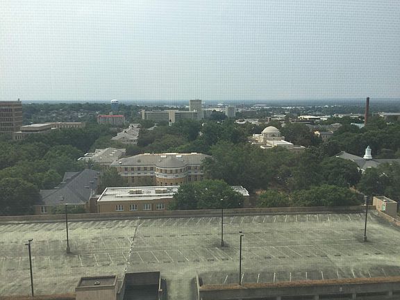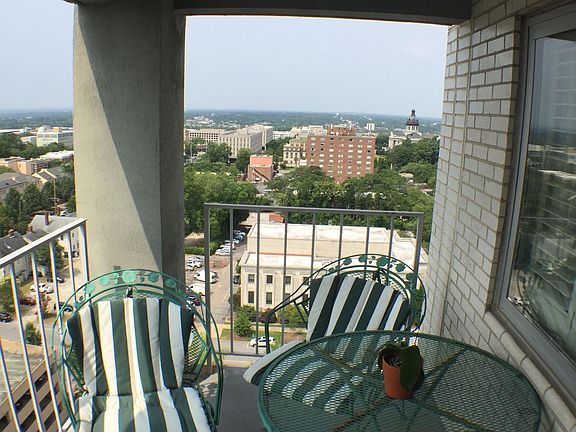 Two bedrooms (2nd bedroom could be a den), one and a half bathrooms, living room, kitchen with refrigerator, stove, dishwasher, microwave and garbage disposal. Common laundry room with several coin-operated washers and dryers. Central heat and air. Hardwood and tile floors. No dogs, one cat maximum with non-refundable pet fee. One parking space in the garage and off-street parking. Balcony. Pool, gym and event room access. Built-in bookcases, ceiling fans. Electric, water and trash included. Located on the 17th floor with great views of the stadium, USC and the capital building. Please note: this property is unfurnished