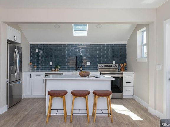 Stunning City Living: Captivating Denver Skyline Views and Modern Upgrades. Welcome to your urban oasis in the heart of Denver! Inside, you'll be instantly captivated by the panoramic vistas of the cityscape. The large windows perfectly frame the stunning skyline, creating a picturesque backdrop that will leave you in awe. The abundant natural light floods the interior, creating a warm and inviting ambiance throughout. No detail has been overlooked in the renovation of this home. The new windows not only showcase the impressive views but also enhance energy efficiency. The brand new roof provides peace of mind and adds to the overall curb appeal with an adorable roof line (new insulation as well up there!). The kitchen is a chef's dream, featuring exquisite quartz counters, sleek cabinetry with soft-close functionality, and stainless steel appliances. The open layout seamlessly connects the kitchen to the living area, making it ideal for entertaining guests or spending quality time with loved ones. The primary suite is spacious and has a rare, en-suite bathroom. The two additional bedrooms share a full bath with stylish tile. Ample private parking ensures you and your guests never have to worry about finding a spot. Plus, being close to the city means you'll have easy access to the vibrant downtown scene, renowned restaurants, trendy shops, and cultural attractions. Just minutes away! Escape to the outdoors and unwind in the expansive yard, landscaped and ready to go! Enjoy the fresh air, host gatherings, or simply bask in the tranquility of your private sanctuary. Embrace the urban lifestyle you've always dreamed of in this amazing property.