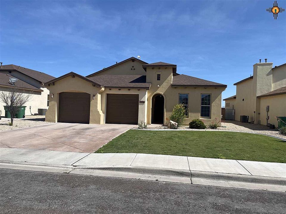 EXCLUSIVE WINDSOR ESTATES! Wonderful Great room features open floor plan with cedar beams, beautiful travertine flooring, energy efficient stainless steel appliances, rustic Tuscany cabinetry, including gourmet kitchen, granite countertops, gas stove burners. This unique floor plan offers a variety of ideal living spaces including a raised platform movie theater room, equipment (projector, movie screen, audition 7 surround sound speakers) which stay. The Tuscan architectural details an open air courtyard dinning, covered outdoor living with a built in TV niche, bar and grill area. home offers a large walk in pantry, large walk in closets, walk in shower, garden tub in master retreat and 2 spacious guest bedrooms. Recently added: landscaping front & back, grass, sprinklers, flower beds, soft water & RO unit and ice maker.